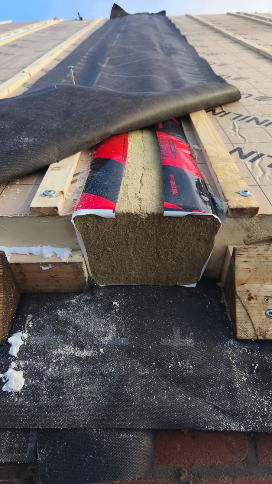 Een belangrijk voordeel van de FIRETIGHT WSW is het montagesysteem. De steenwol in de FIRETIGHT WSW is gecomprimeerd in een zware dampdichte folie, wat zorgt voor een compact en handzaam formaat. Monteurs schuiven het element eenvoudig tussen de dakpanlatten. Na het lossnijden van de folie zet de WSW zich uit en klemt het materiaal zich stevig vast tussen de dakelementen. Het detail is zo direct luchtdicht en brandwerend afgedicht.